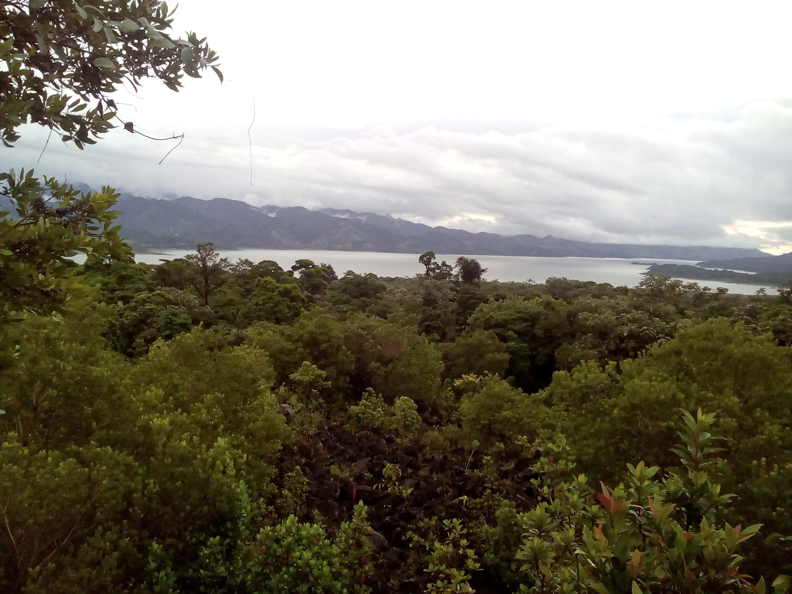 Finally we emerged from the rainforest to find the dark side of the volcano. We climbed up some serious volcanic rocks and when we reached the end of the safe zone we turned to look out over Lake Arenal.