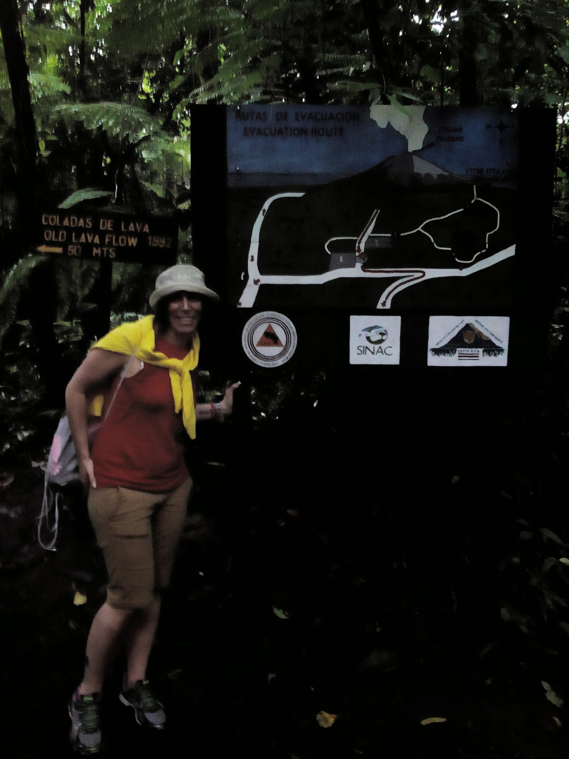 We got back in the van and drove about 800 meters to the start of the trail. Jenni made a note of the evacuation route. This was before we learned that the scientists believe the magma chamber is now empty and it “probably” won’t erupt for another five hundred years.