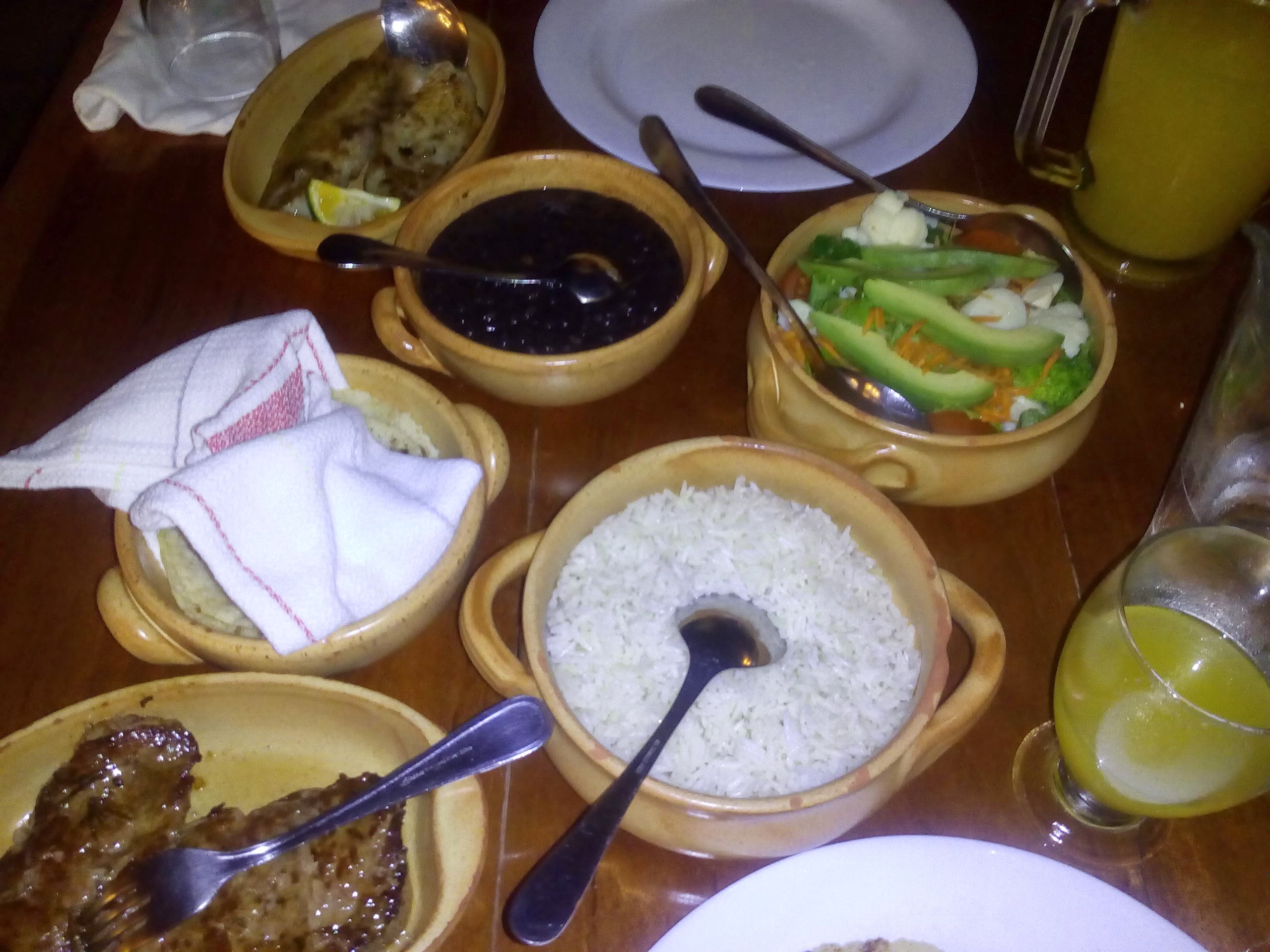 At 7:30 we changed clothes and headed to the restaurant. Jenni suddenly couldn’t find her wallet so we were a little panicky, but we hoped she’d just forgotten to bring it and decided to try to enjoy our meal anyhow. They served the meal family style and of course with rice and beans.