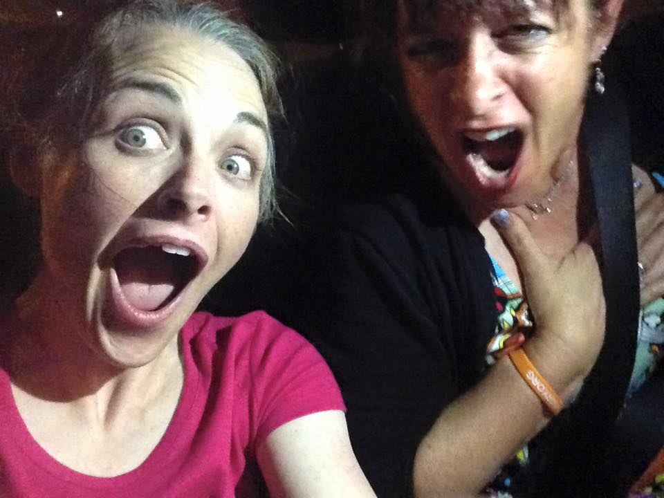 A dramatic recreation of the moment we realized Melissa’s phone had gone flying out the top of the mini and was somewhere on the 395.