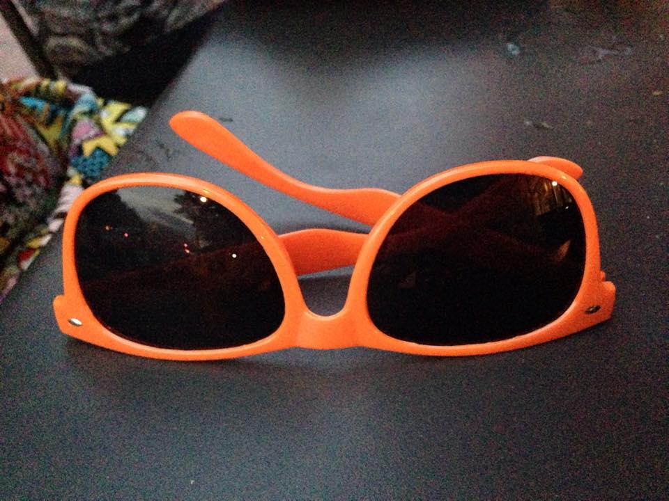 At that point we were feeling pretty good and we noticed that they were had piles of orange bracelets and sunglasses near the auction table. Everyone knows how much Ali loves orange, so we liberated some for her.