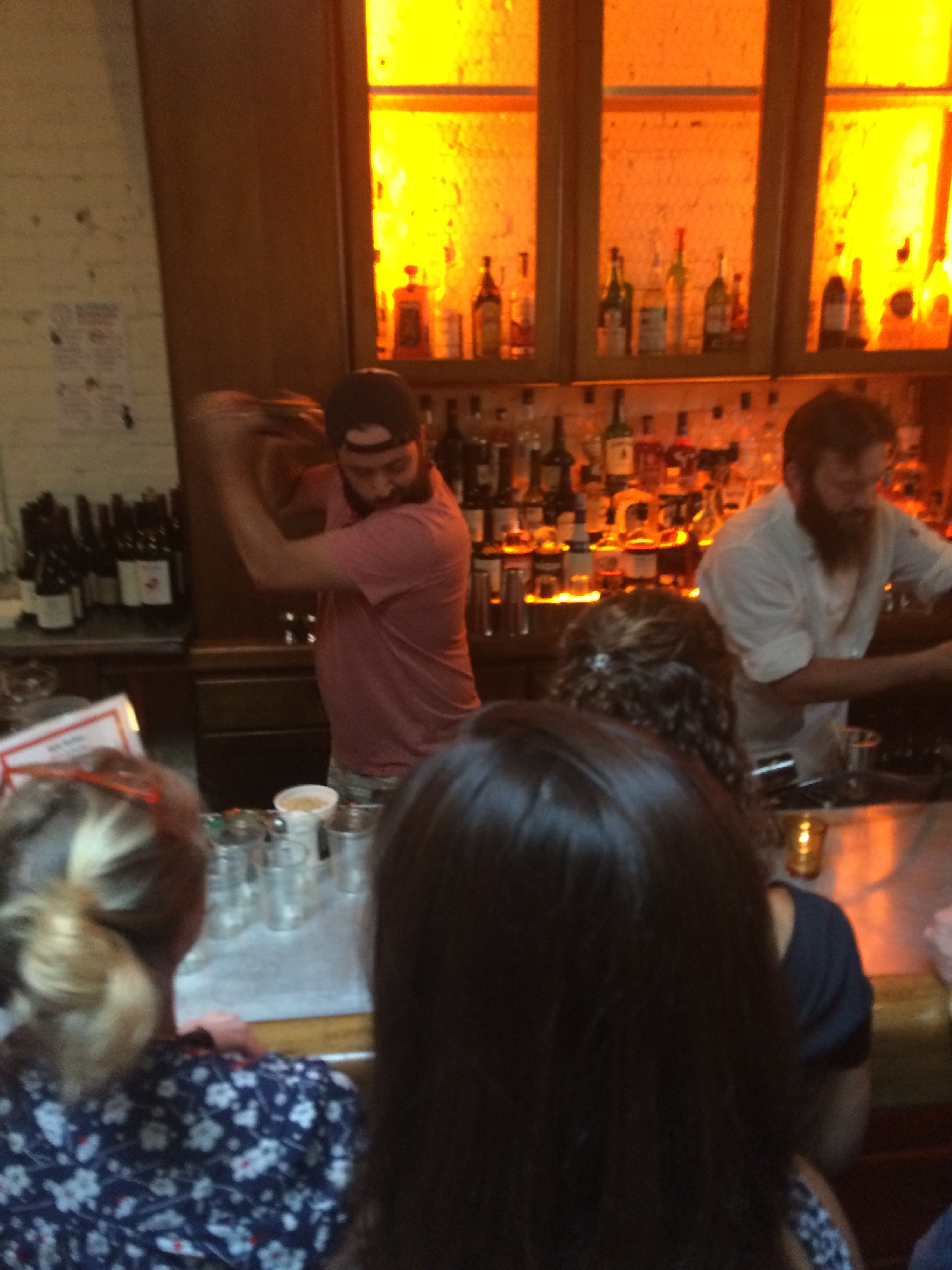 The first cocktail we tried was actually a snow cone mixed by Louis Goral from the Rural Society. It was some sort of orange flavored liquor poured over the crushed ice and then topped with coriander seeds and dried olives. It was absolutely delicious, but hard to eat, We had to toss out most and then we made our way to the other end of the bar to try a cocktail from Hamilton Johnson of Vidalia. This was my favorite cocktail of the first round, and maybe my second favorite overall.