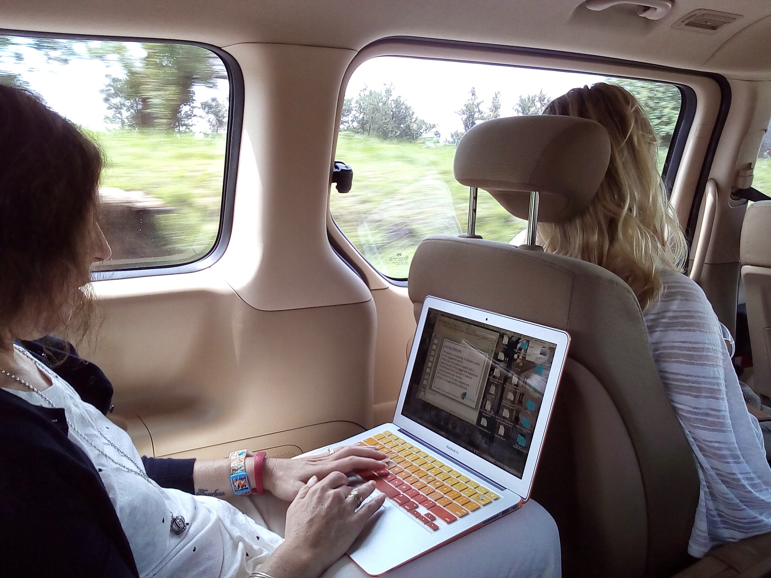 Jenni and Danielle in the back of the van on the way to the airport. Notice Jenni is working again. I was too. It was a work trip!