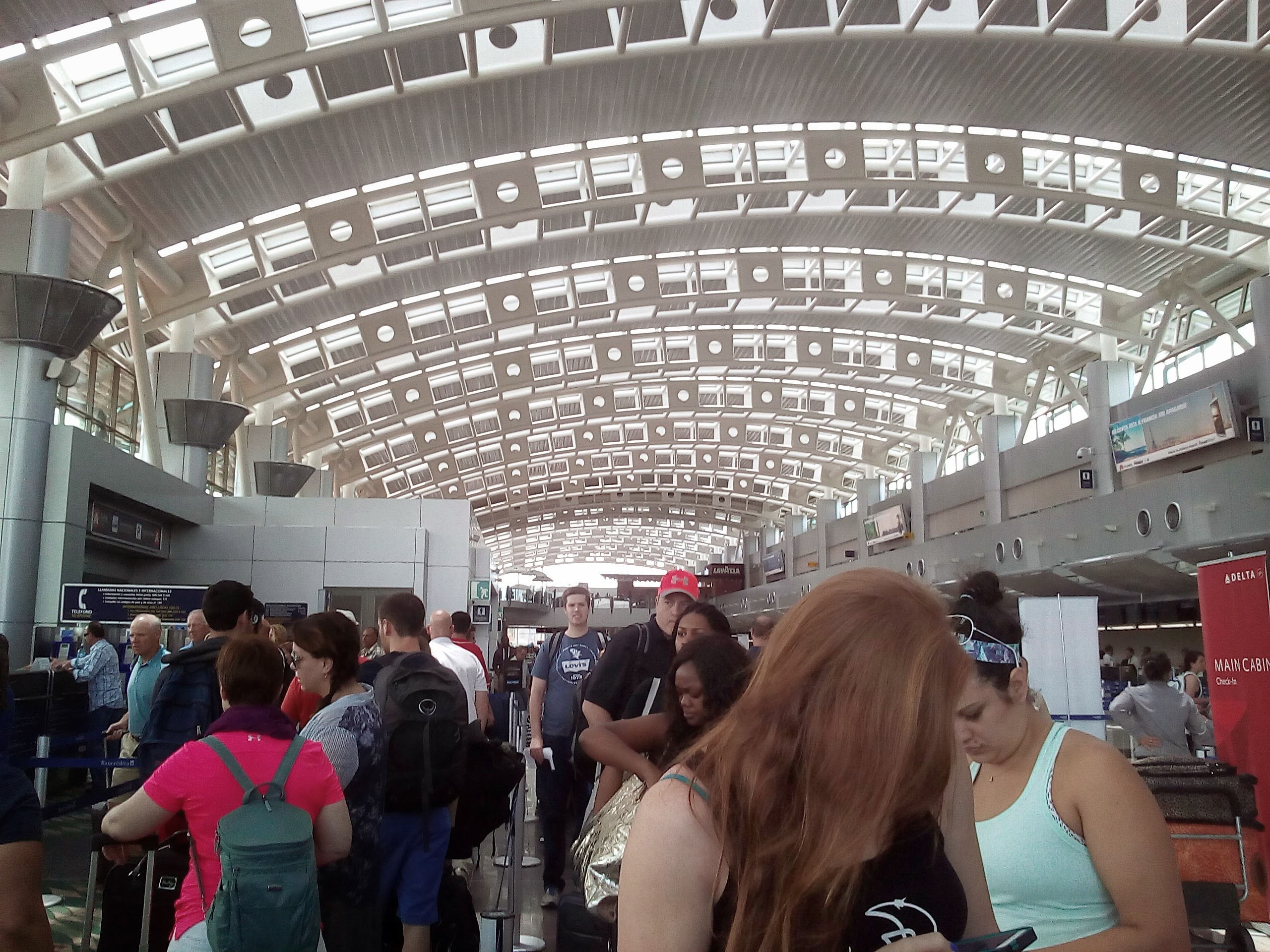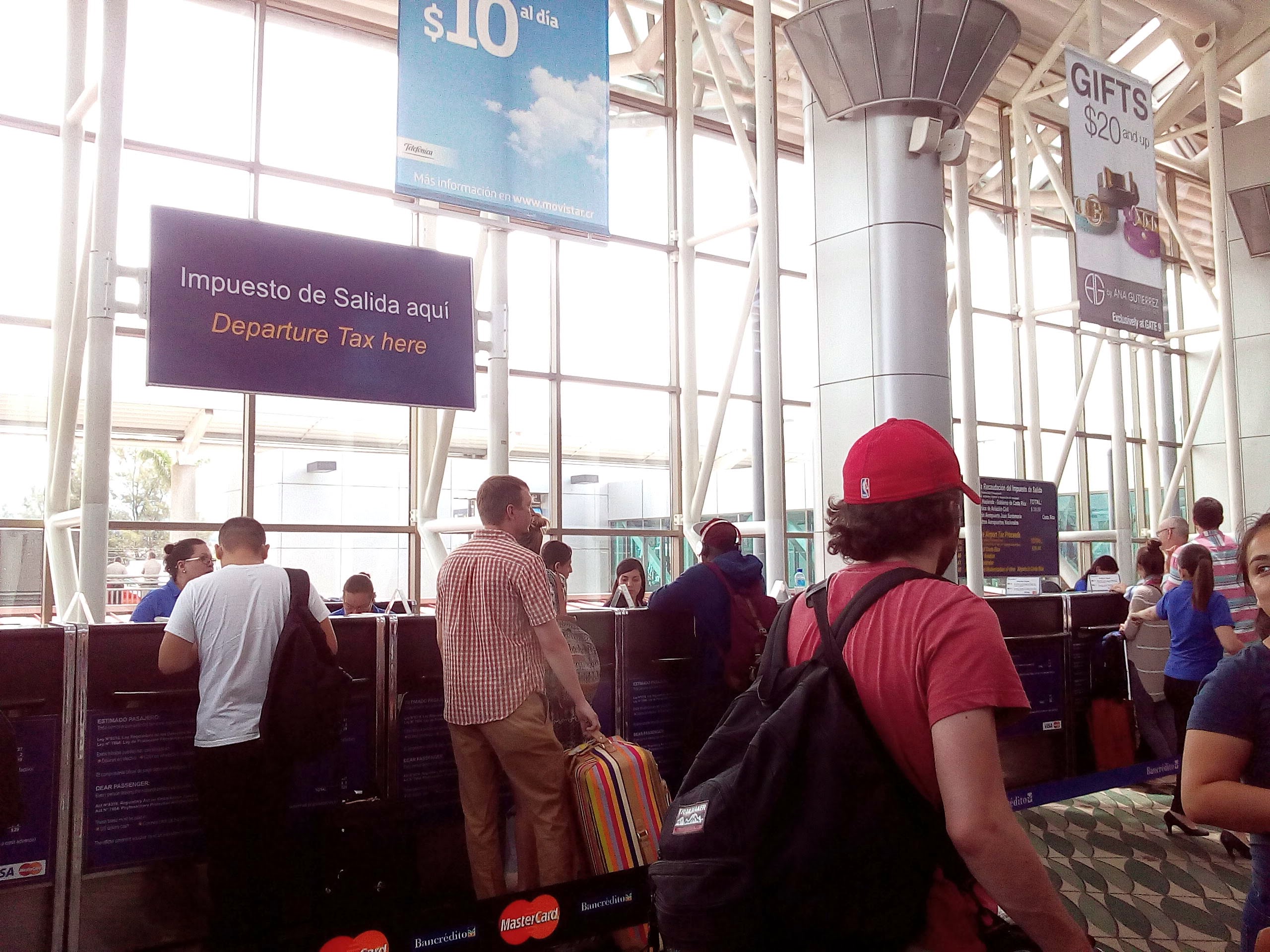 Jenni and I headed to the Delta counter to check in and check her bag and discovered we couldn’t leave the country until we’d paid the “departure tax”. It was $29 and they took cash (American or Costa Rican) and credit. That didn’t take long so we went back to the counter and dropped off Jenni’s bag. We made it through security pretty quick and spent the last of our colones.