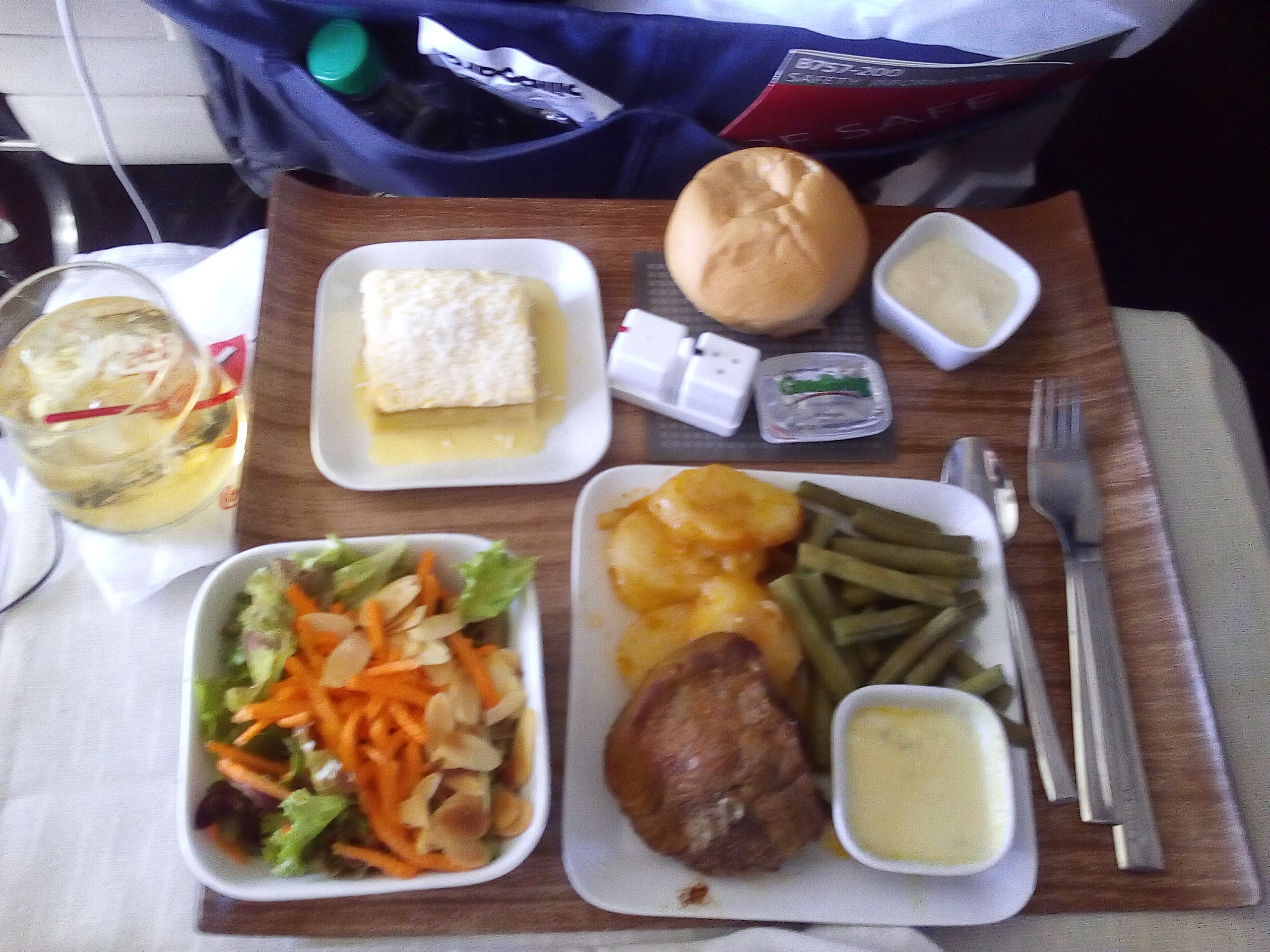 We saw Danielle again as we were boarding but Jenni and I were up at the front of the plane. As soon as she sat down, Jenni whipped her computer out and started working agin. I waited until we were in mid-air to join in! We finished our last project just before they served us dinner.