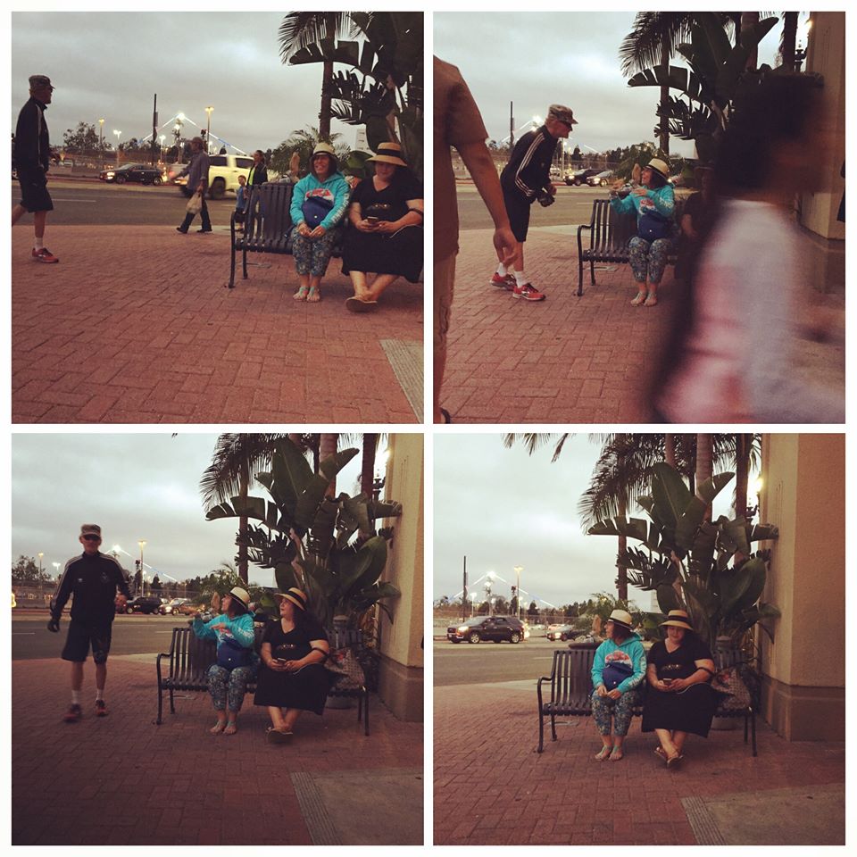 We sat on the benches just outside the door to wait for her and Lisa pointed out that would be the best vantage point for the fireworks. It was right on the corner of Harbor Drive and Pacific Highway.