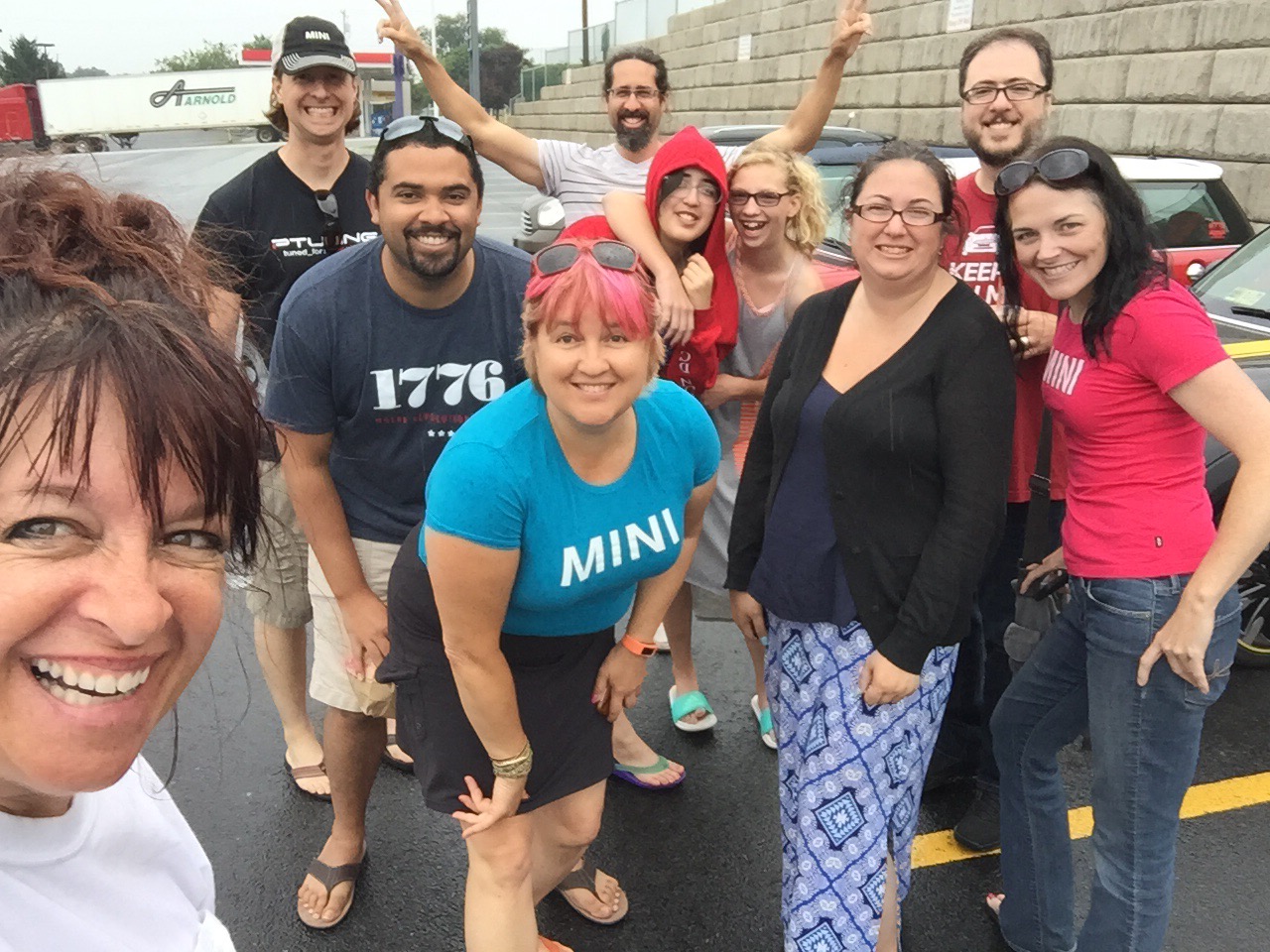 Not long after we got to Ohio we picked up a stray MINI heading in the same direction. It joined our caravan and when we stopped at a rest area, we all got out to chat! Linda and Andy Hartman from Pittsburg were also on their way to #minionthemack2015! Their red MINI was super cute with white dots and bonnet stripes.