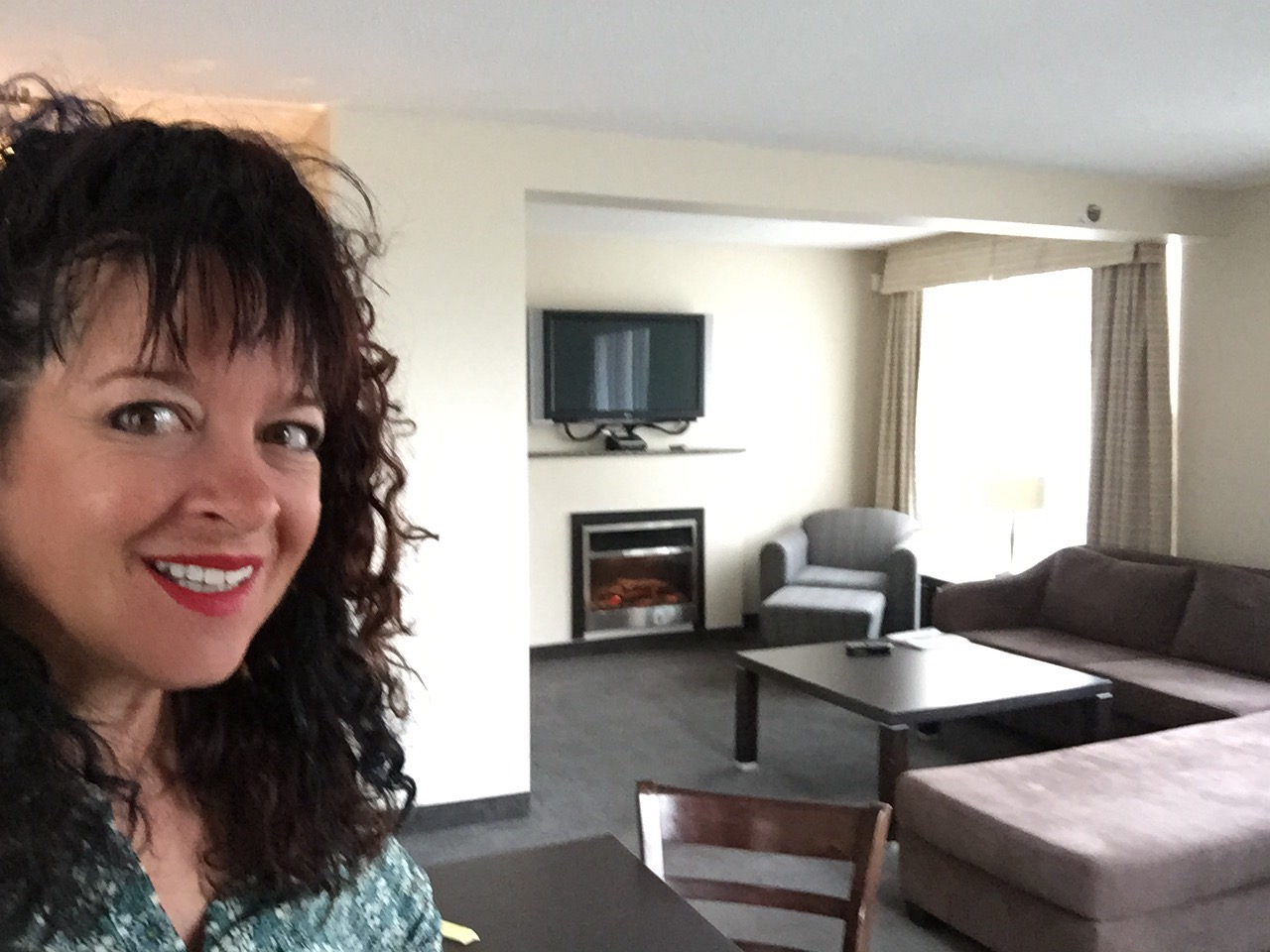 When our training was over on Thursday, everyone else left town but there weren’t any flights to Montreal that late so I spent the night at the Des Moines Doubletree. It’s an interesting hotel with an Italian steakhouse and really beautiful Asian art throughout the lobby. I’d chipped a nail so the woman checking me offered to have the shuttle driver run me over to Walgreens for some polish. Super helpful! I decided to make it a spa night and got a hair mask as well. When I got back and went up to my room I discovered they’d upgraded me to the corner suite. It had a separate area with a giant couch and TV.