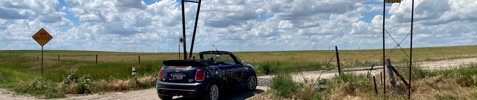 In spite of the dust, I had a great time posing for pictures until some cowboy pulled in. I left him to it and drove the 12 miles back to the main road.
