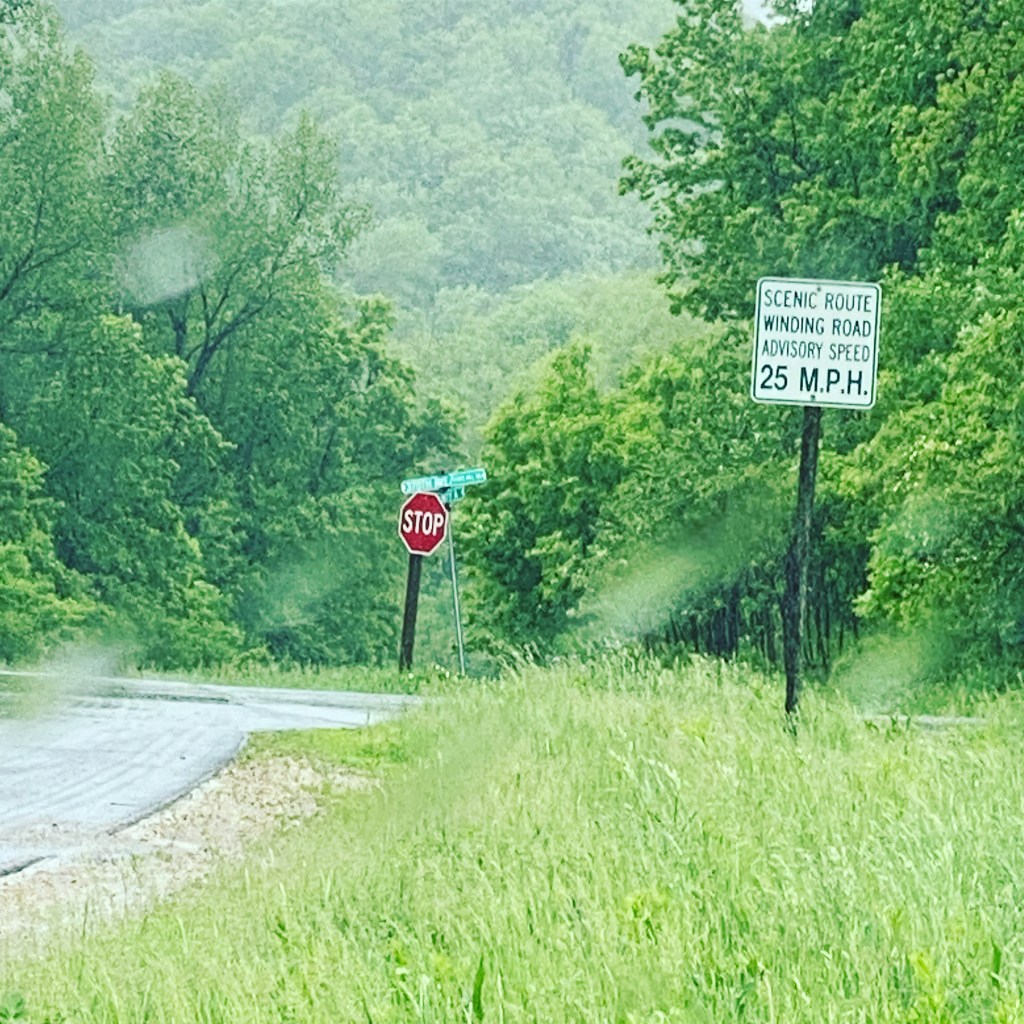 The road was fun to drive, very twisty, but the low clouds and rain meant there really wasn’t a view. It’s too bad because the Byway runs across the mountain tops that overlook the Mississippi river and the views are probably stunning when they aren’t experiencing torrential downpours!