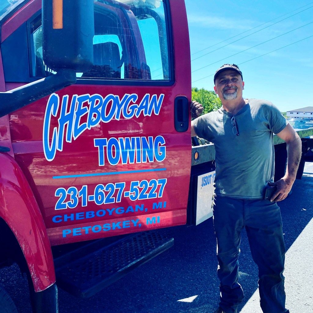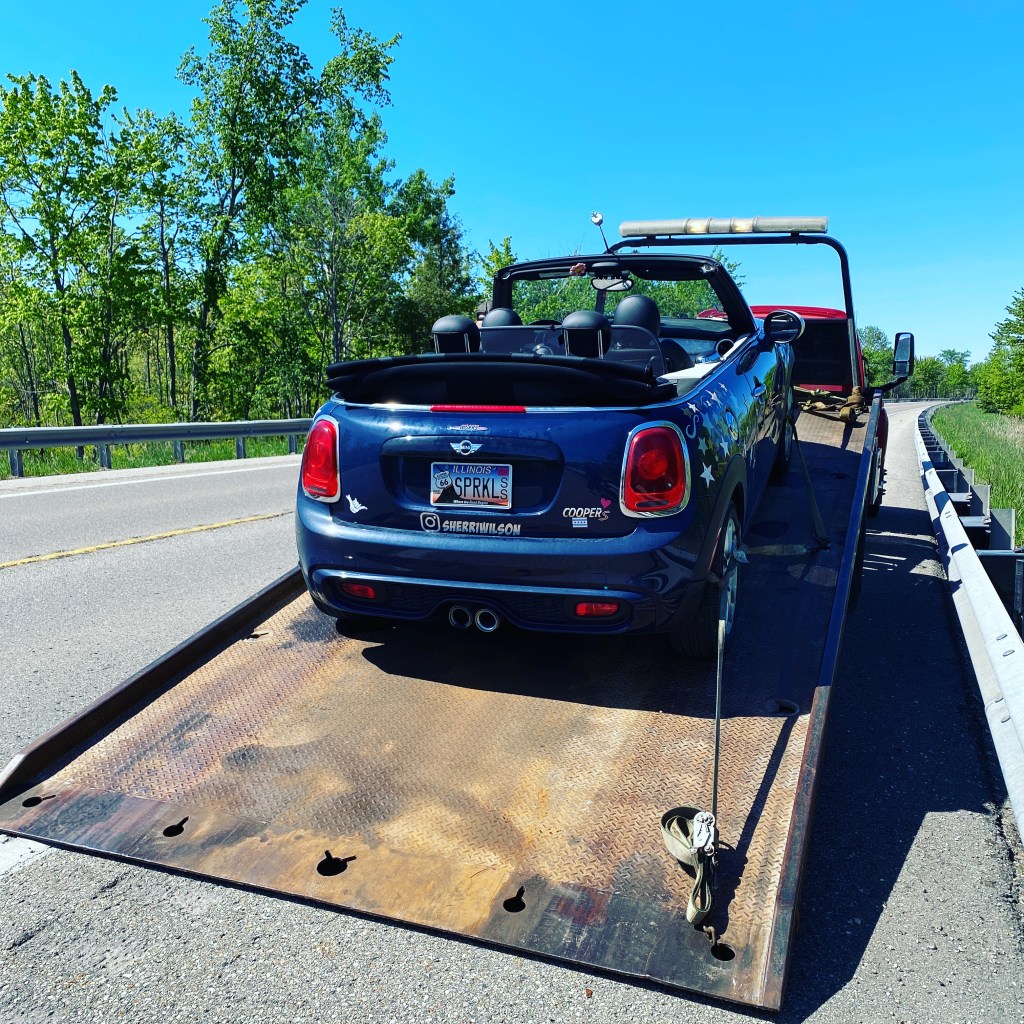 I don’t think you are supposed to run on a run flat that was that flat so I called AAA for a tow. She asked me where I was going to go so while we were talking I started looking for towns with tire shops in the area. Petoskey was the closest town even though I’d passed it about 10 miles back. While I waited for the tow truck I started calling tire shops. Since it was Sunday, none of them were open. I finally got ahold of the tire center in the Walmart but her news was not great. She didn’t have any tires that would fit my MINI and suggested I might have to wait for Belle Tires to open. Meanwhile the tow truck driver called and said he was only 5 minutes away (which was much sooner than the AAA lady had told me to expect)!