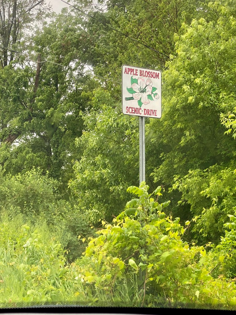 I stopped for gas and bought an apple fritter to take with me to the Apple Blossom Scenic Byway. However, it was raining pretty hard so a picnic appeared to be out of the question.