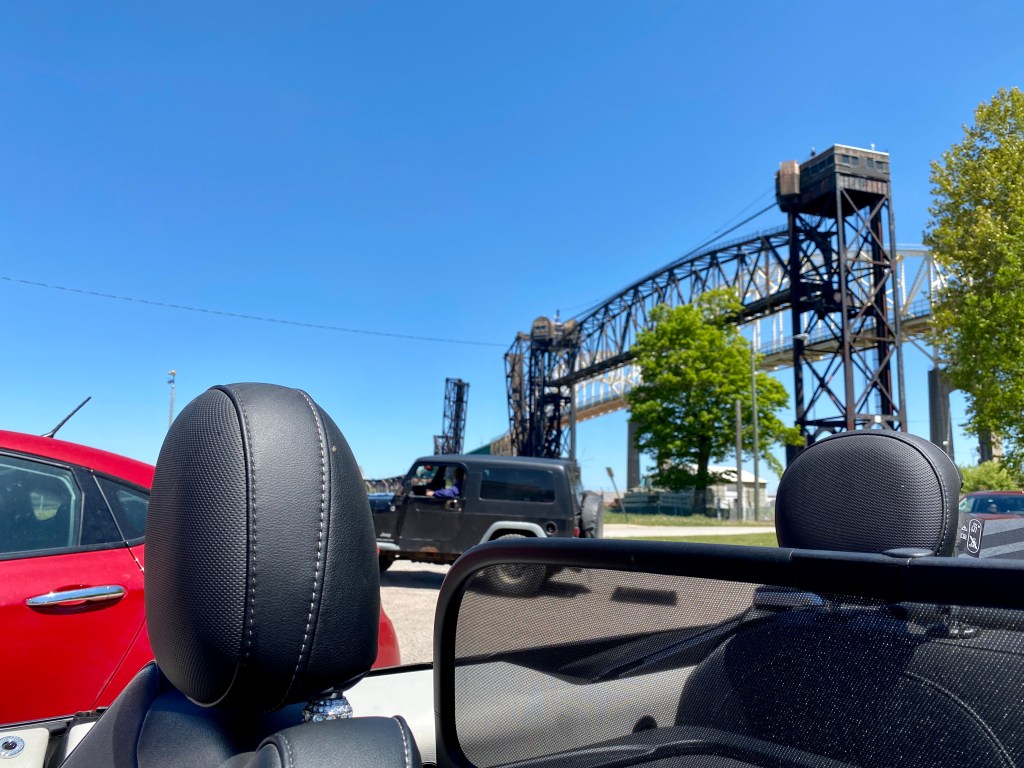 When I left there, I headed up to Sault Saint Marie for lunch. They had a drive in that was supposed to have a view of the bridge to Canada and amazing hamburgers. Both are true, although I got there during peak time and the only spot open didn’t have a great view.