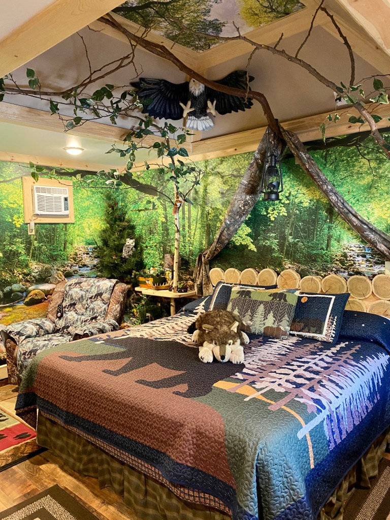 After lunch I headed south to St Ignace. The road was practically empty so I hit the fun button and hauled ass. My first stop was the car wash. Then I checked into the Bear Cove Inn. I’d booked the Wilderness Room and they weren’t lying!
