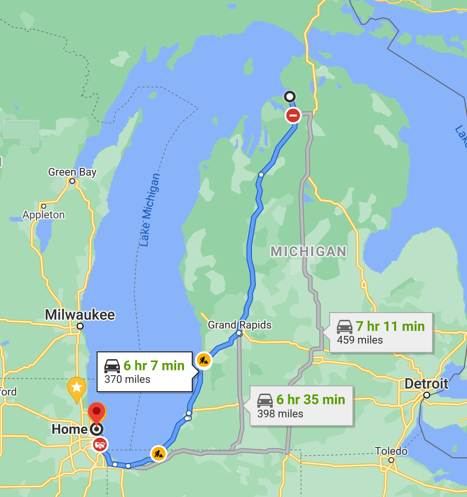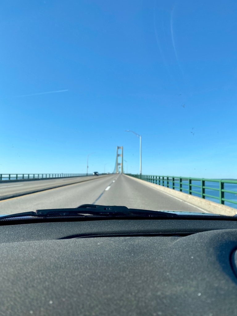 In spite of the dreadful sensory overload and abundance of predators in the Wilderness Room, I slept like a baby. My car was nice and shiny after the car wash the night before so I loaded her up and headed out. When I got to the Mackinaw bridge I paid the toll for the minivan behind me in a futile attempt to earn some good karma. They sped up to wave and honk and seemed super appreciative, so that was worthwhile!