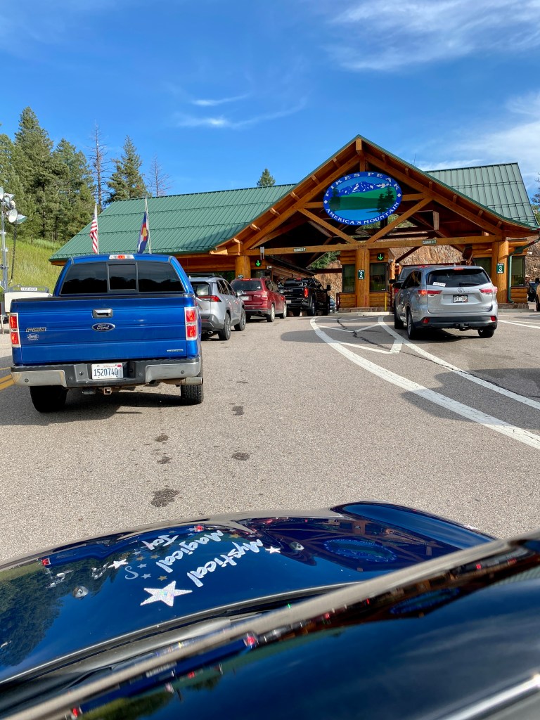 When I awoke, there was chill in the air, but it was over 40 so I put the top down and popped over to Starbucks for a flat white to keep me warm on the inside. My first stop was Pike’s Peak. They opened at 7:30 and I timed my arrival so I’d be there soon after it opened. I stopped for a couple of pics on my way in and then ended up about 10 cars back in the line when they opened.