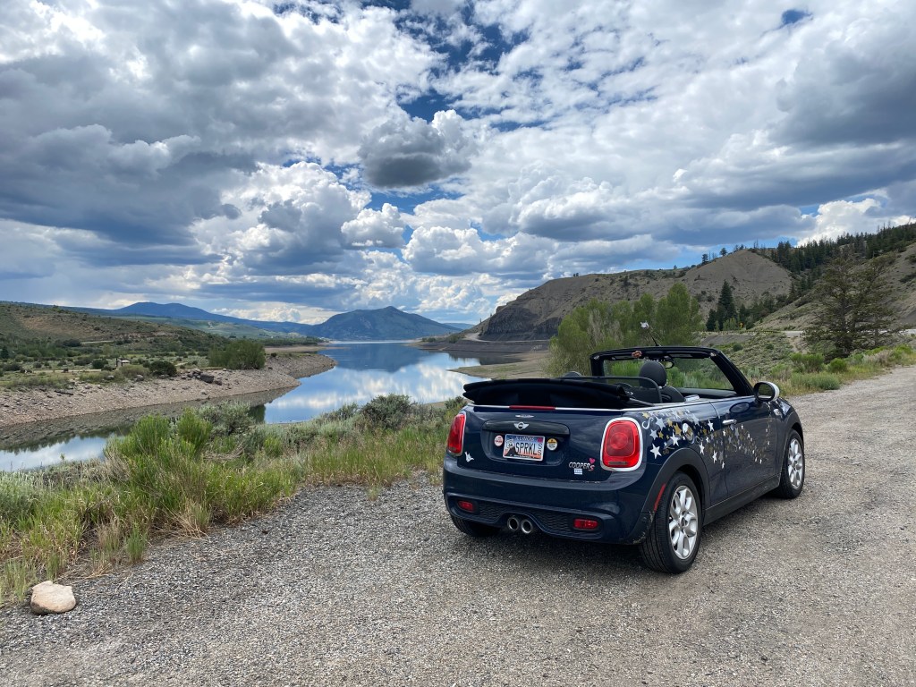 Breckinridge was super crowded. There were mobs of people everywhere just shuffling down the sidewalks. I didn’t linger.My route took me through Silverthorne and it started raining. I had to put up my top because the aerodynamics don’t work on switchbacks but as soon as I crested that mountain it stopped and I put it back down.