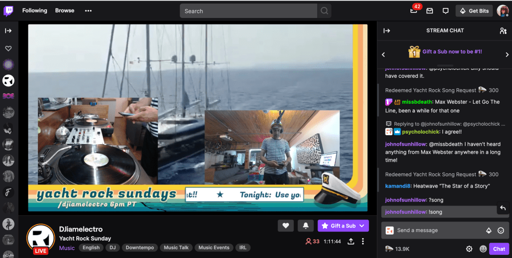 I went back to my room and turned on Twitch to watch DJ Iamelectro’s Yacht Rock Sunday and cheer myself up! I mean if Yacht Rock can’t lift your spirits what can? Besides the fudge I’d purchased for the pod which also helped!